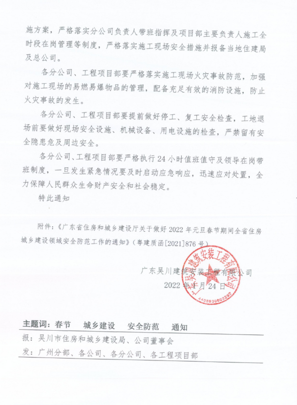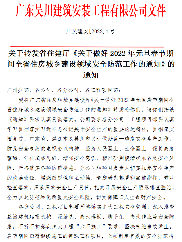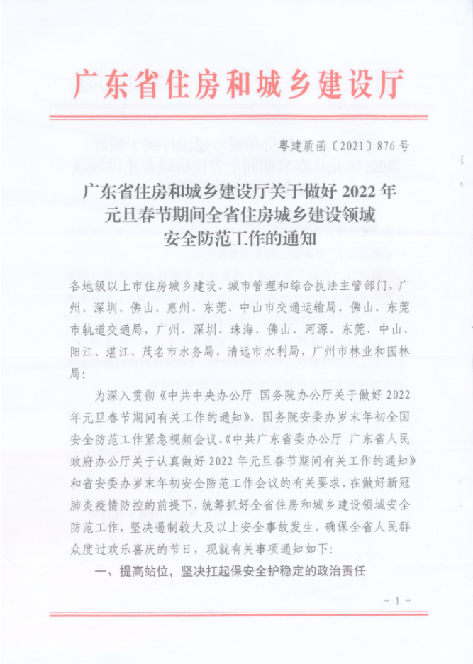 關于轉發(fā)省住建廳《關于做好2022年元旦春節(jié)期間全省住房城鄉(xiāng)建設領域安全防范工作的通知》的通知