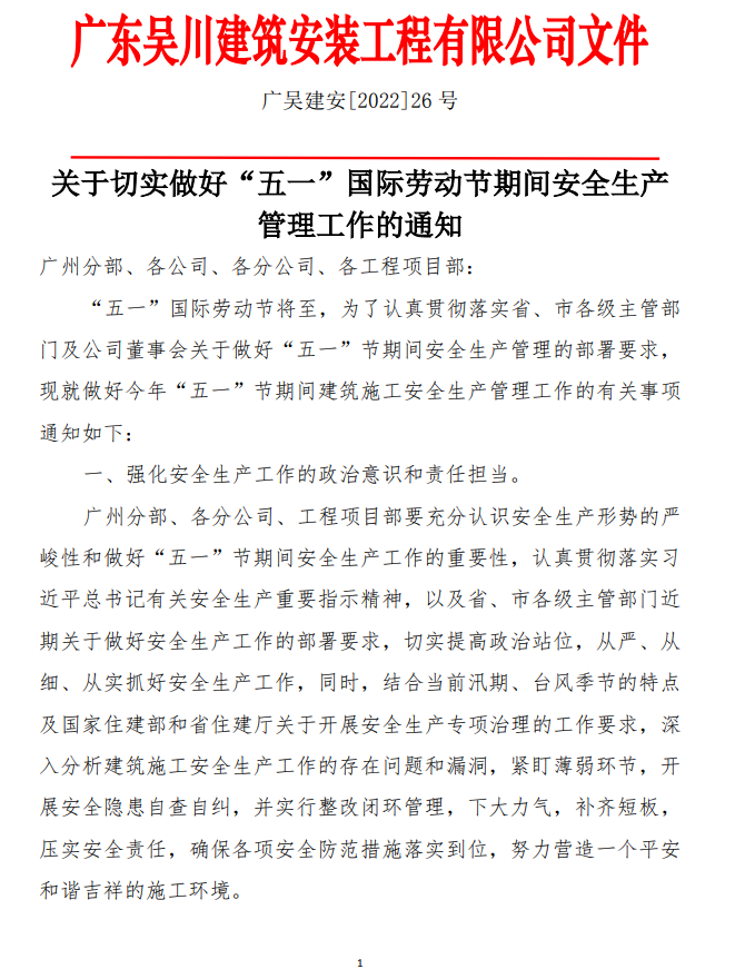 關(guān)于切實(shí)做好“五一”國(guó)際勞動(dòng)節(jié)期間安全生產(chǎn)管理工作的通知