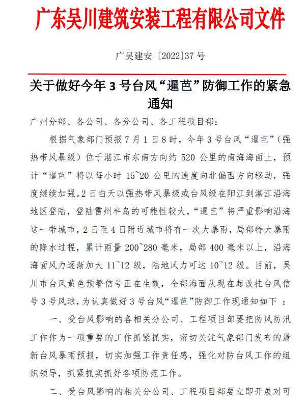 廣吳建安[2022]37號文:關(guān)于做好今年3號臺風“暹芭”防御工作的緊急通知