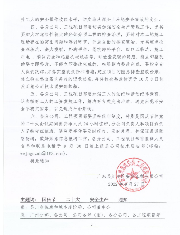 關(guān)于切實做好國慶節(jié)及黨的二十大期間安全生產(chǎn)管理工作的通知