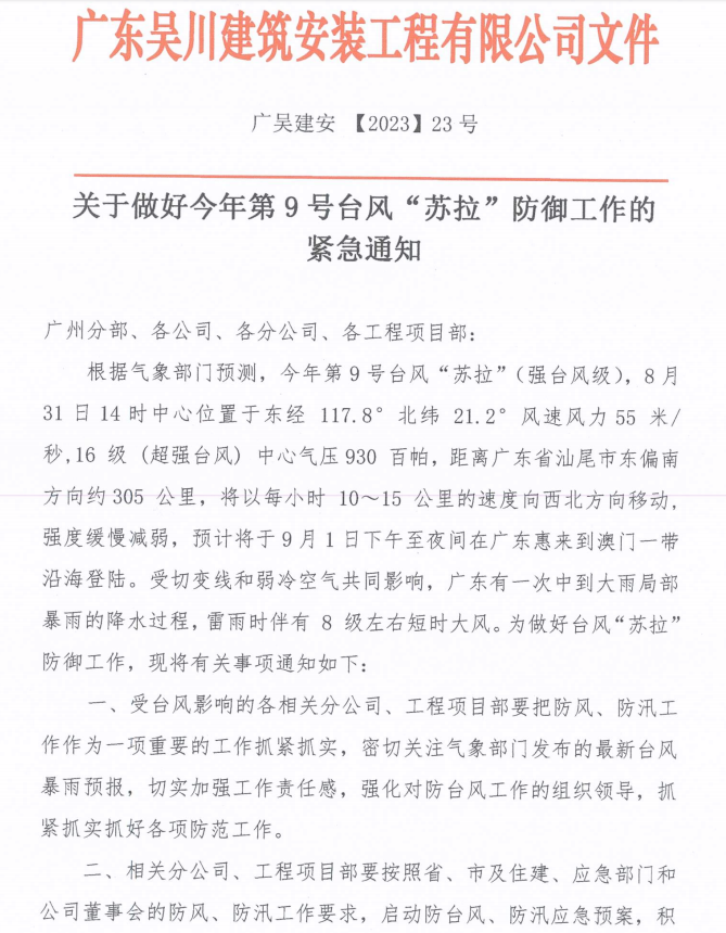 關(guān)于做好今年第9號臺風(fēng)“蘇拉”防御工作的緊急通知